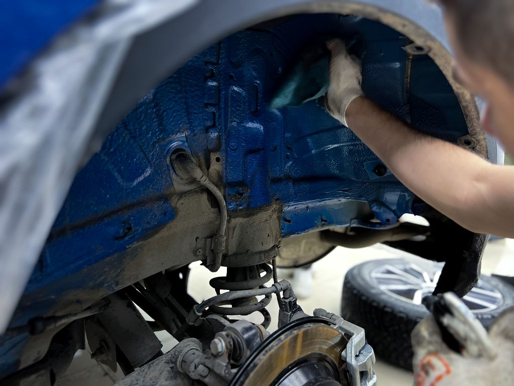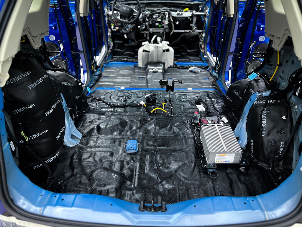 - все дно багажника и крылья оклеиваем мене толстым и тяжелым Шумофф М3.