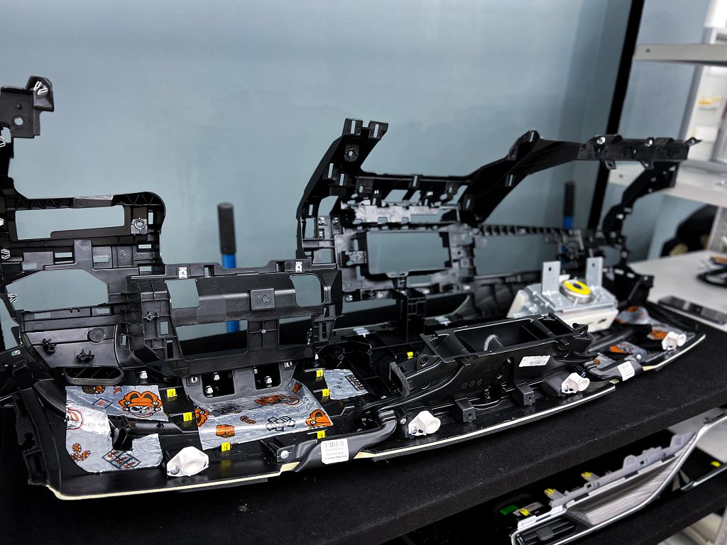Приступаем к разбору панели и центральной консоли, аккуратно демонтируем воздуховоды, молдинги, декоративные вставки. Далее переходим к электронике, отключаем провода от магнитолы, климат контроля и различных кнопок, никакого вмешательства влияющего на гарантию не происходит, мы лишь штатно отключаем и подключаем разъемы.