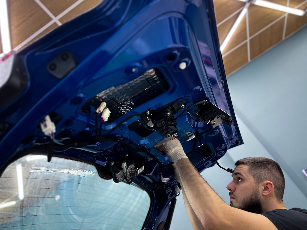 Виброизоляция пятой двери Джили Атлас Для пятой двери используем легкую виброизоляцию Шумофф L2.
