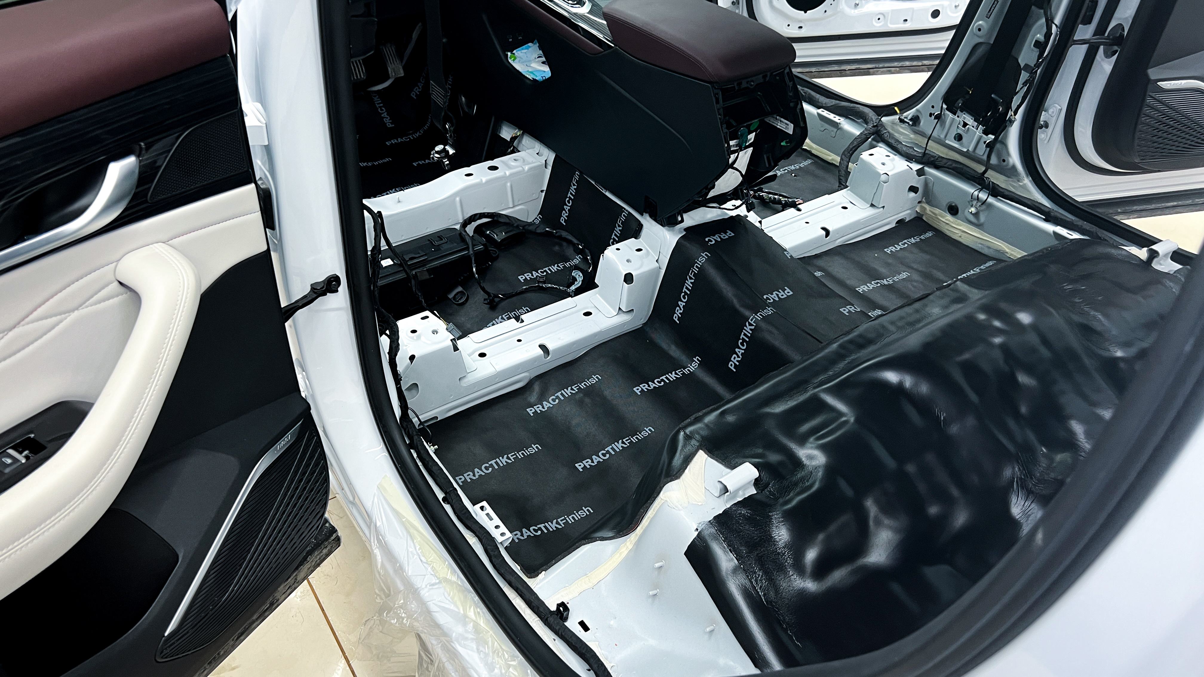 Штатная шумоизоляция Джили Монжаро Перед началом шумоизоляции пола на Geely Monjaro (Джили Монжаро) необходимо проверить качество адгезии заводской виброизоляции к кузову. Она должна хорошо держаться, в противном, случае её необходимо демонтировать.
