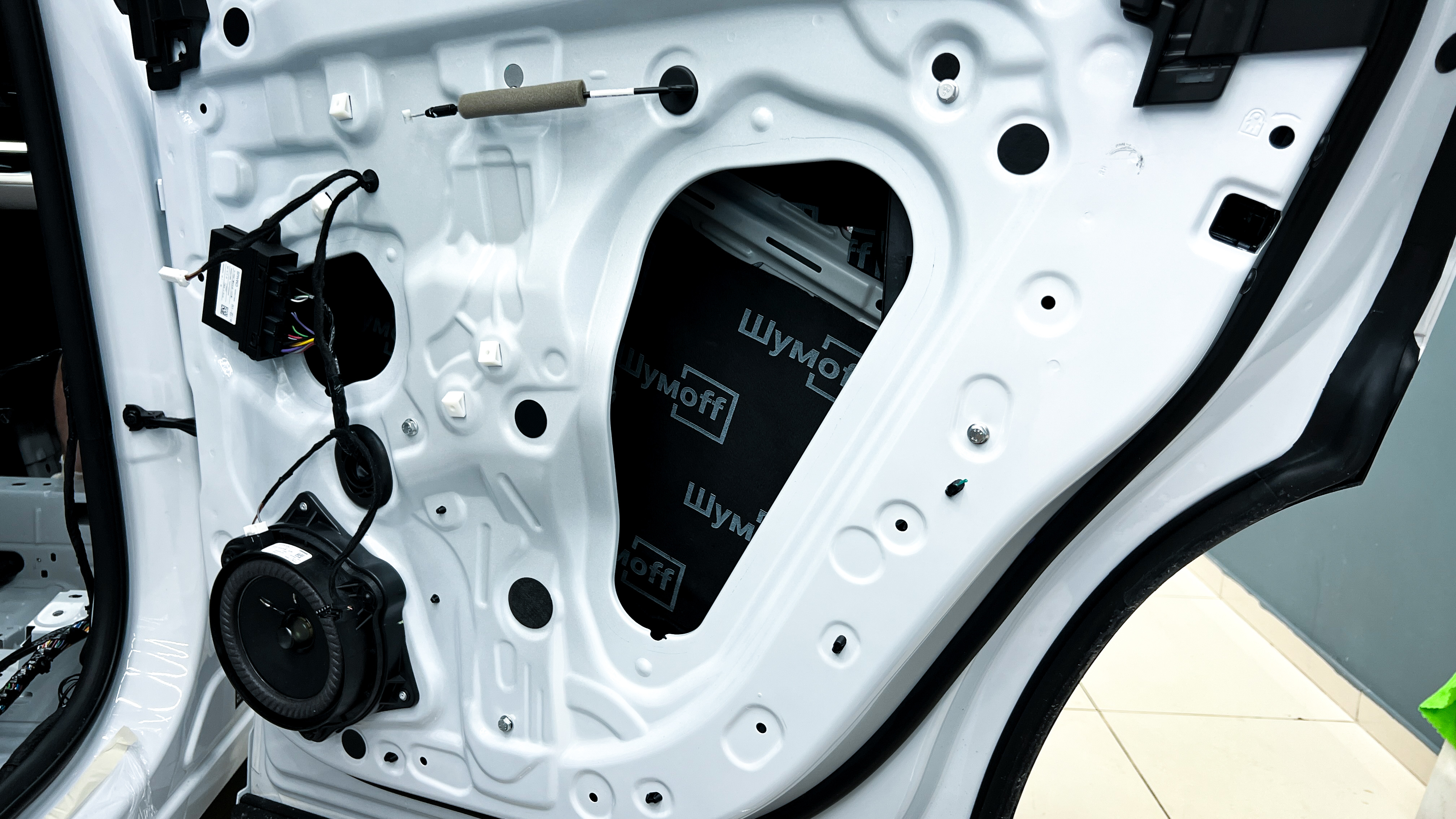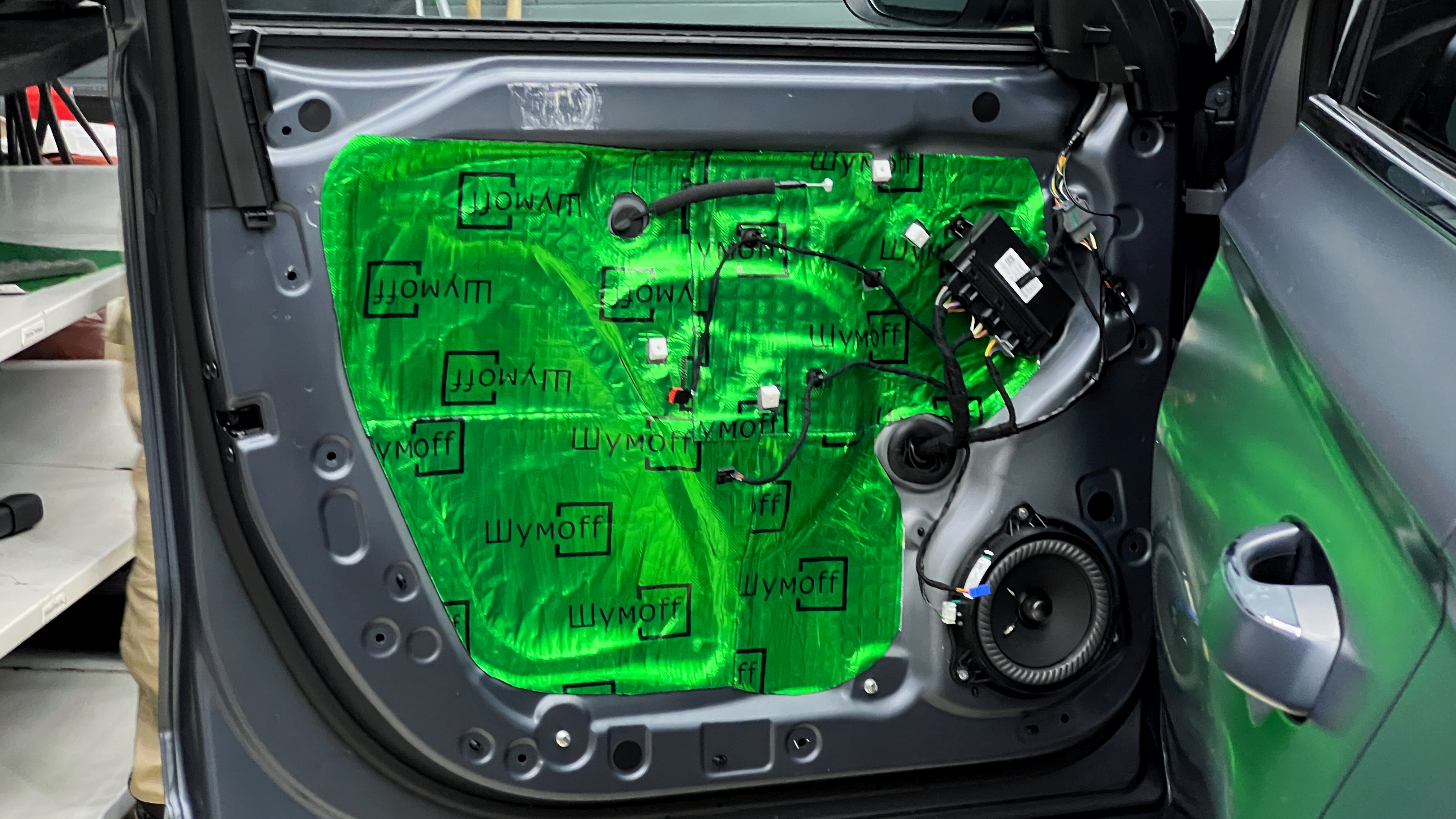 Шумоизоляция двери Джили Монжаро Вторым слоем внутрь двери поверх виброизоляции клеим современный шумо и теплоизолятор Шумофф Комфорт 6.