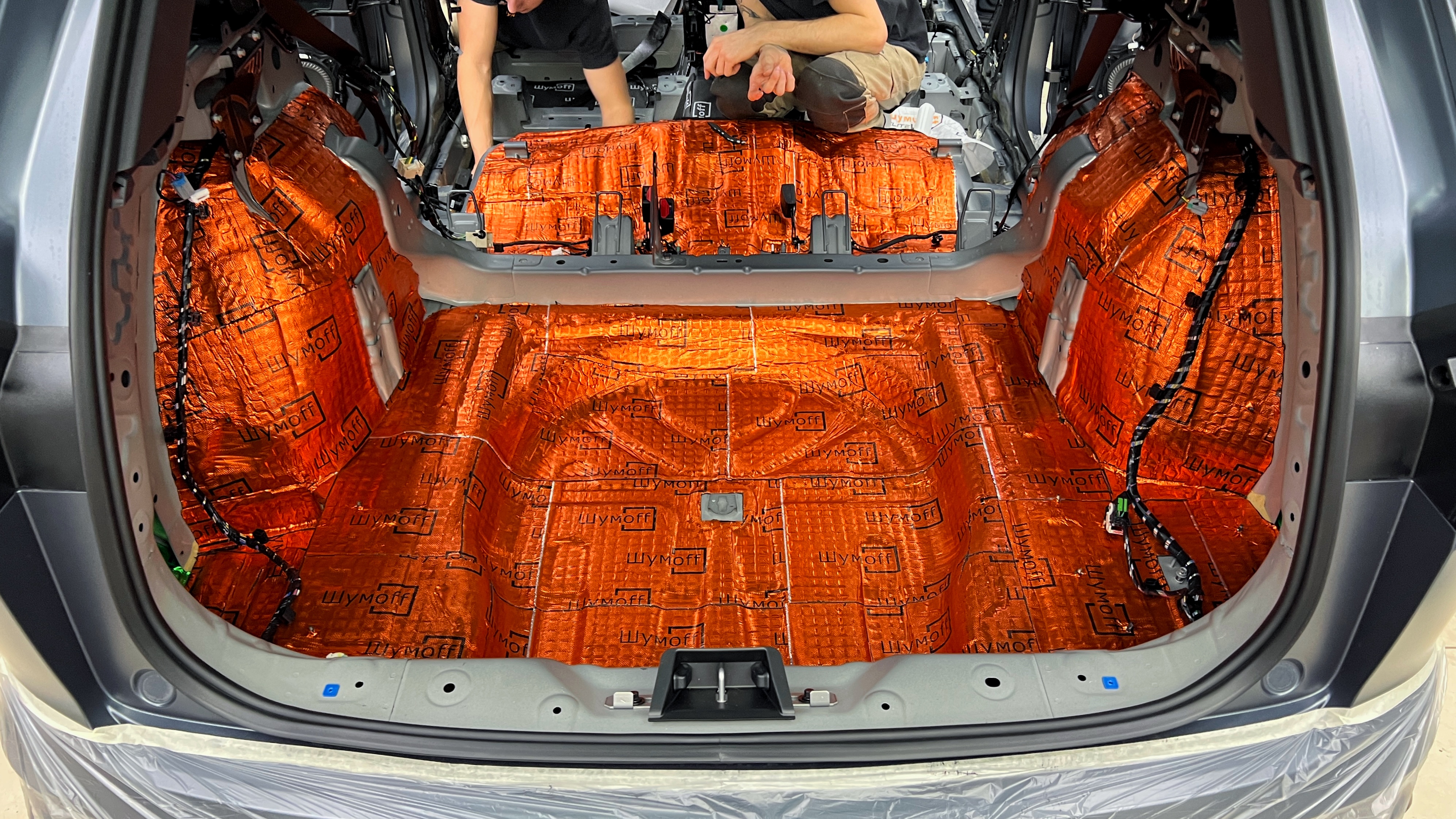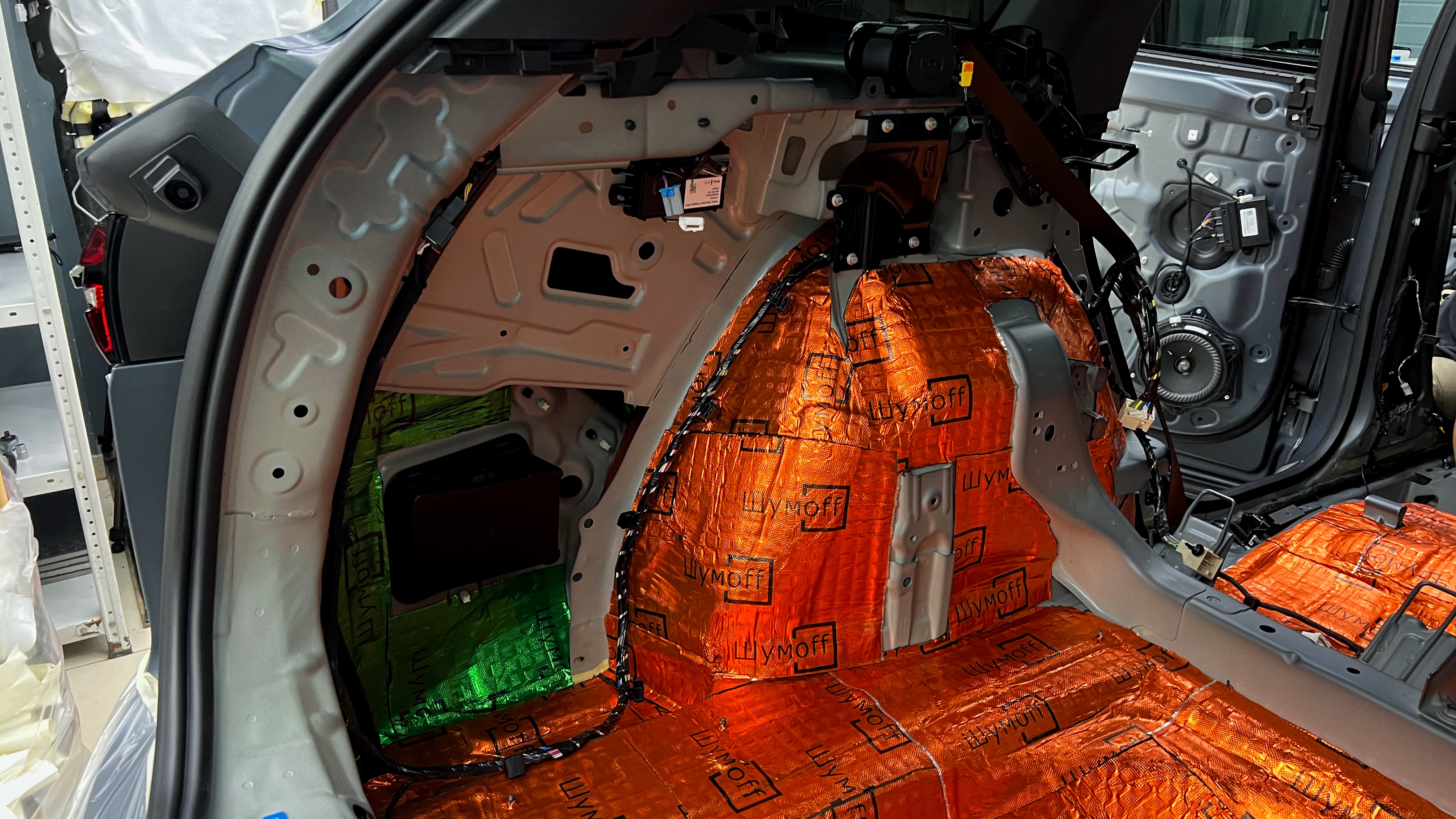 Вибро и шумоизоляция пятой двери  Джили Монжаро Для пятой двери используем легкую виброизоляцию Шумофф L2.