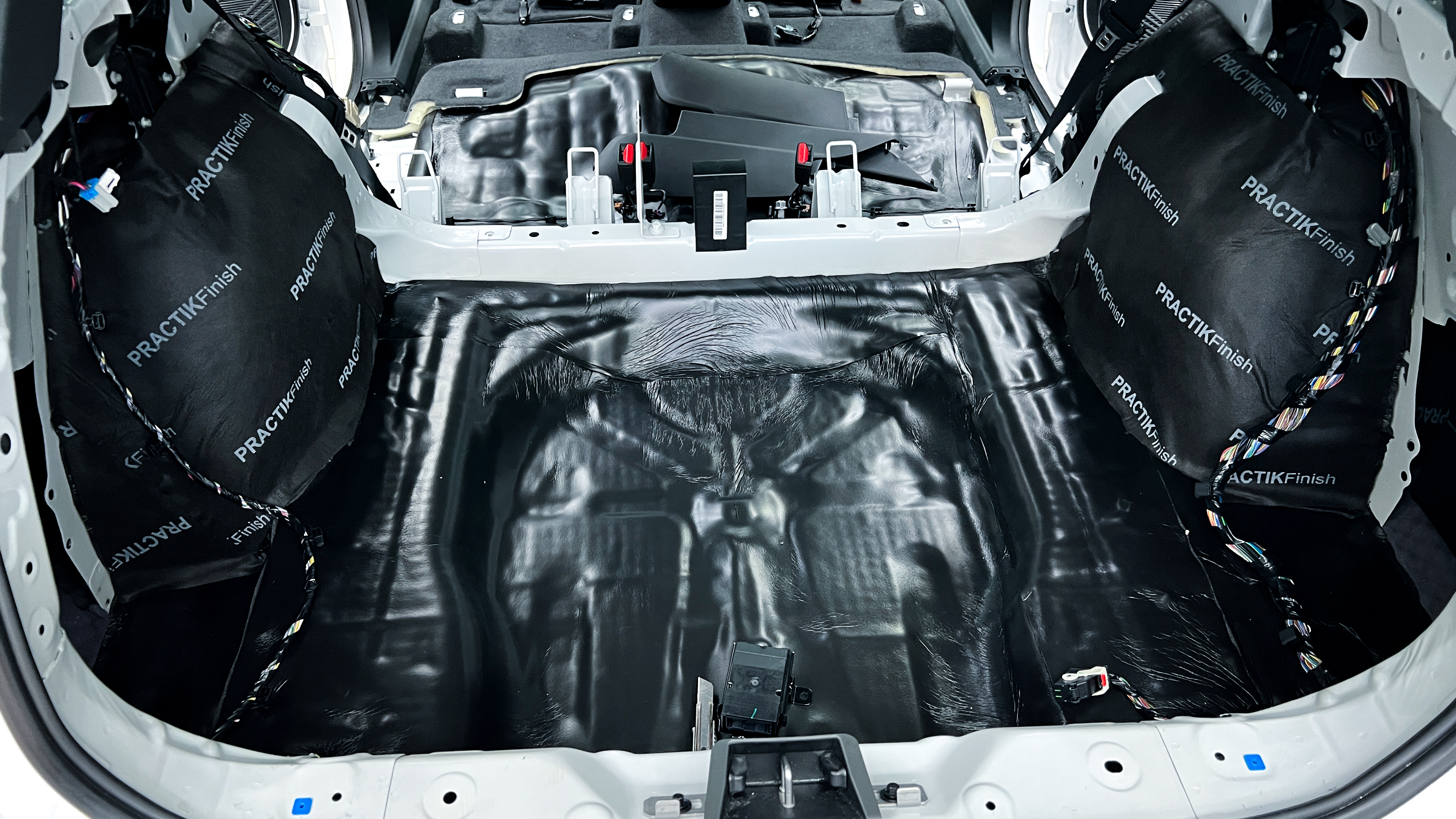- все дно багажника и крылья оклеиваем мене толстым и тяжелым Шумофф М3.