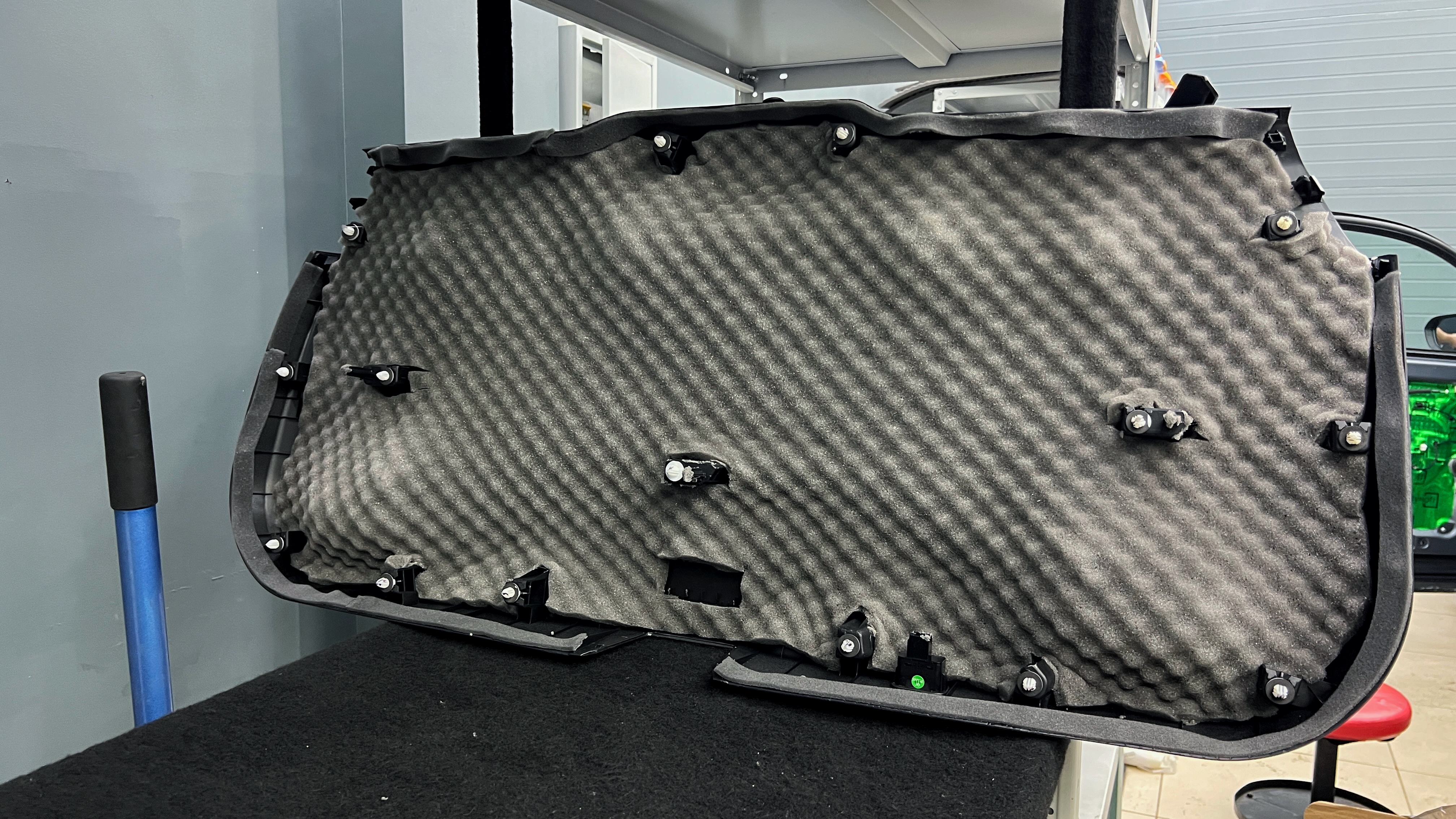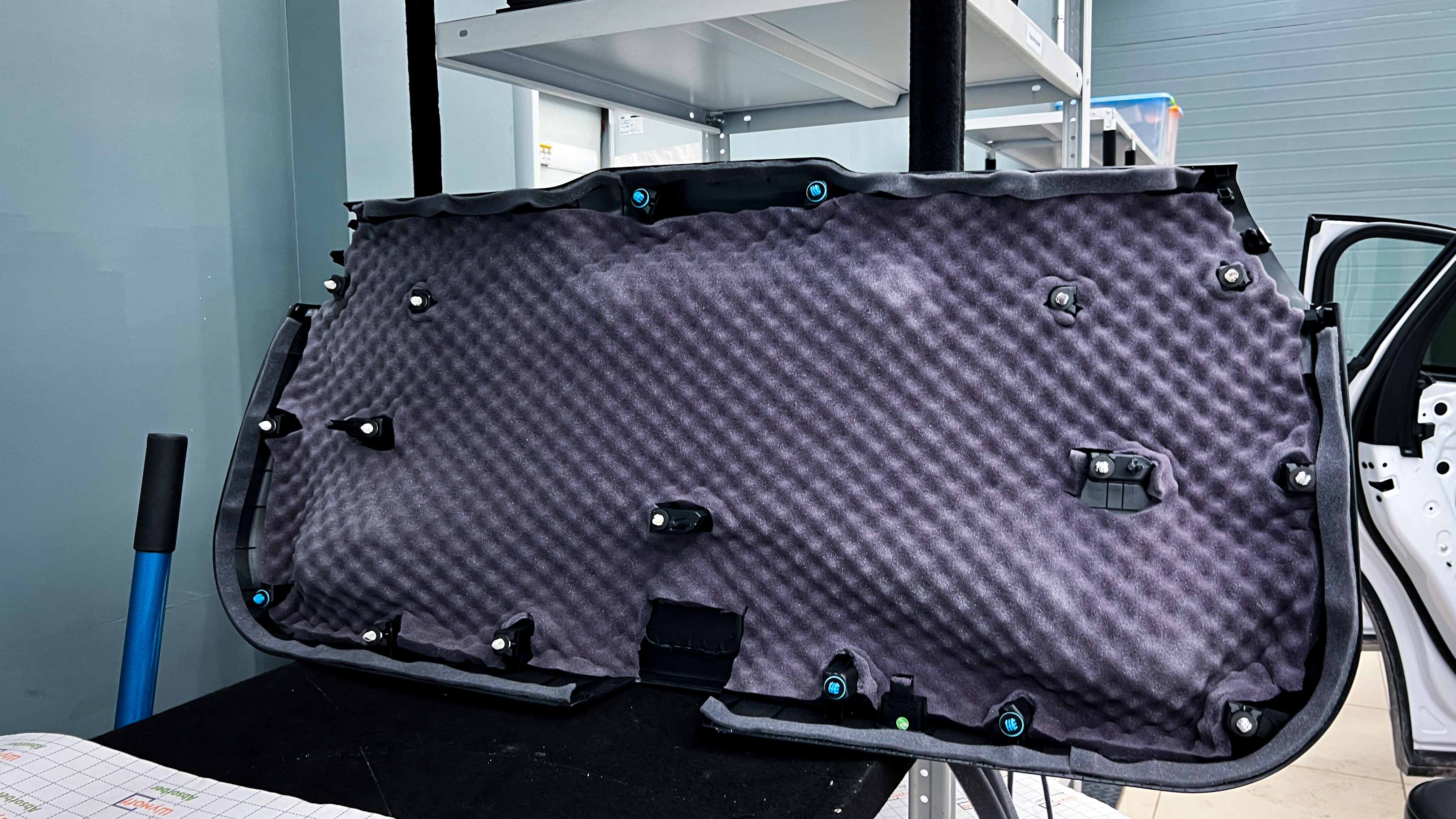 Для виброизоляции крыши багажника используем материал Шумофф L2, чтобы свести увеличение веса к минимуму. После чего переходим к обшивке.