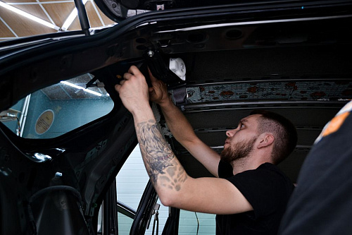 Для виброизоляции крыши багажника используем материал Шумофф L2, чтобы свести увеличение веса к минимуму. После чего переходим к обшивке.