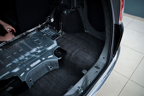 Штатная шумоизоляция багажника практически отсутствует, при