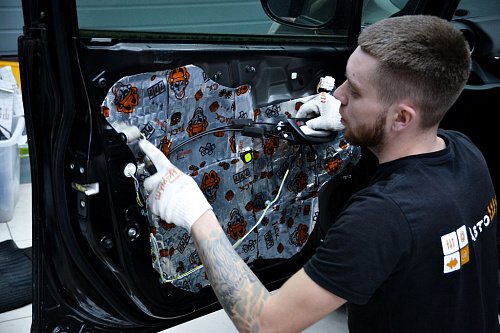 Этот слой поможет улучшить звучание даже штатной акустики, а также сделать закрывание дверей более приятным.