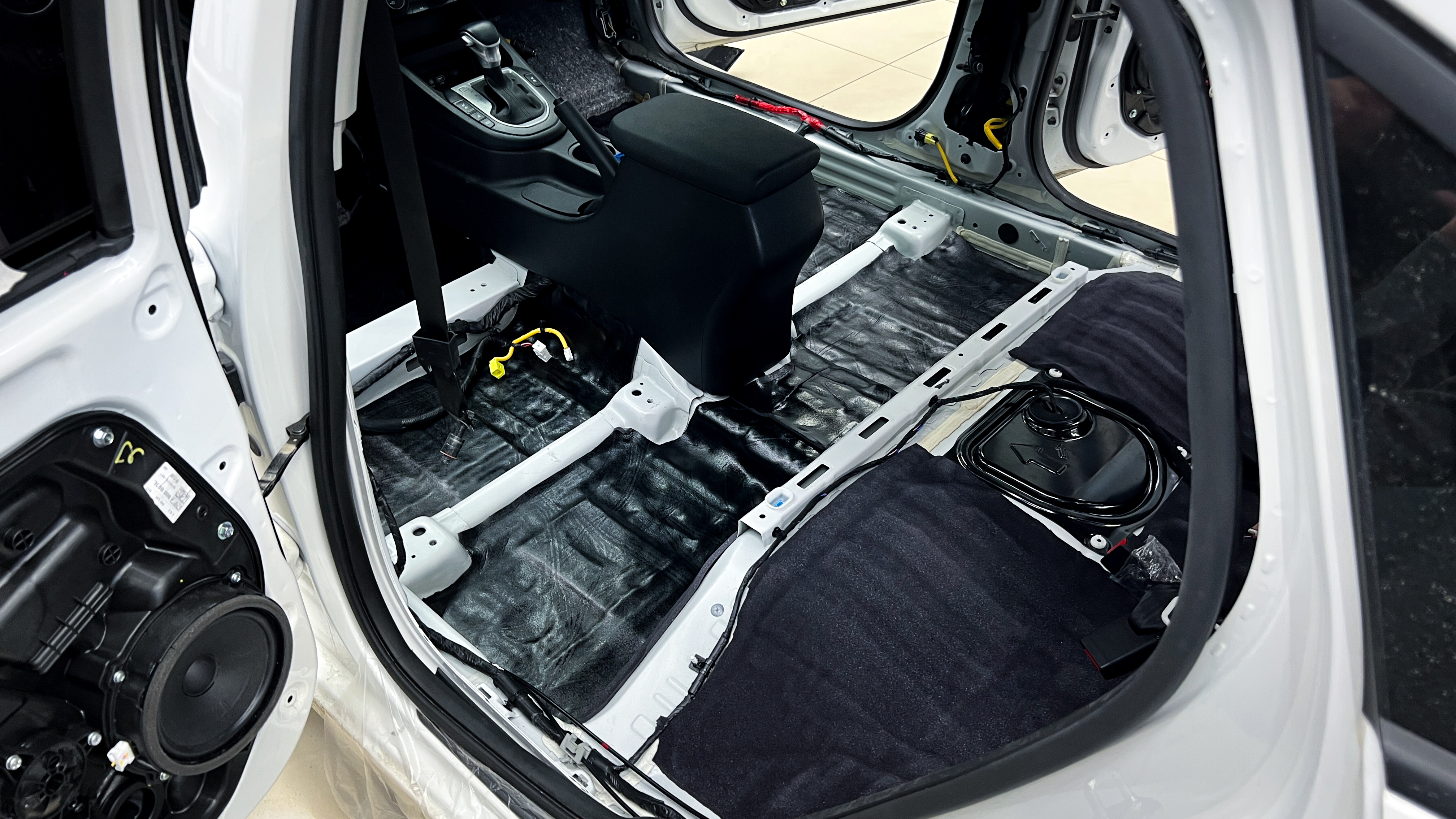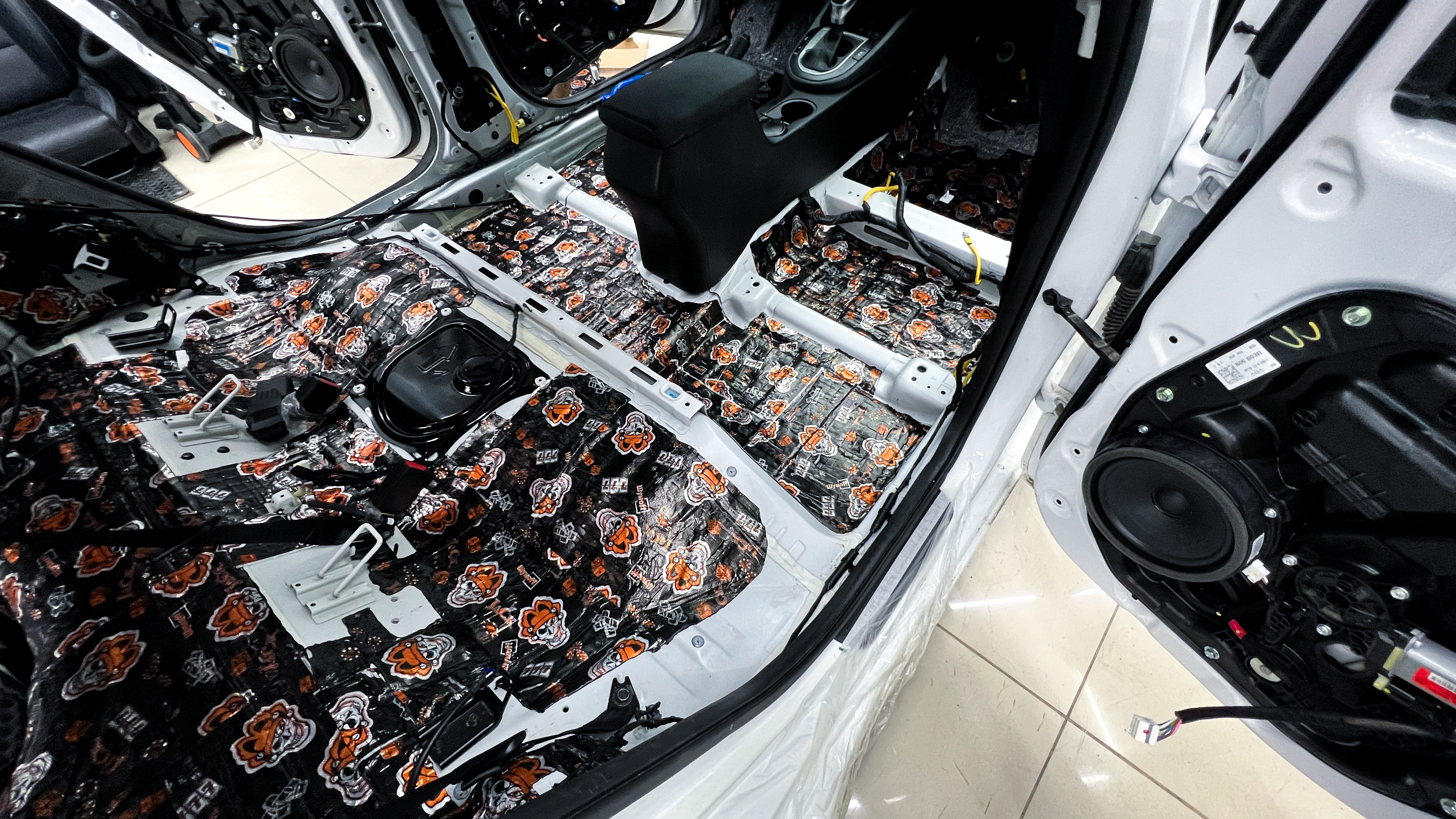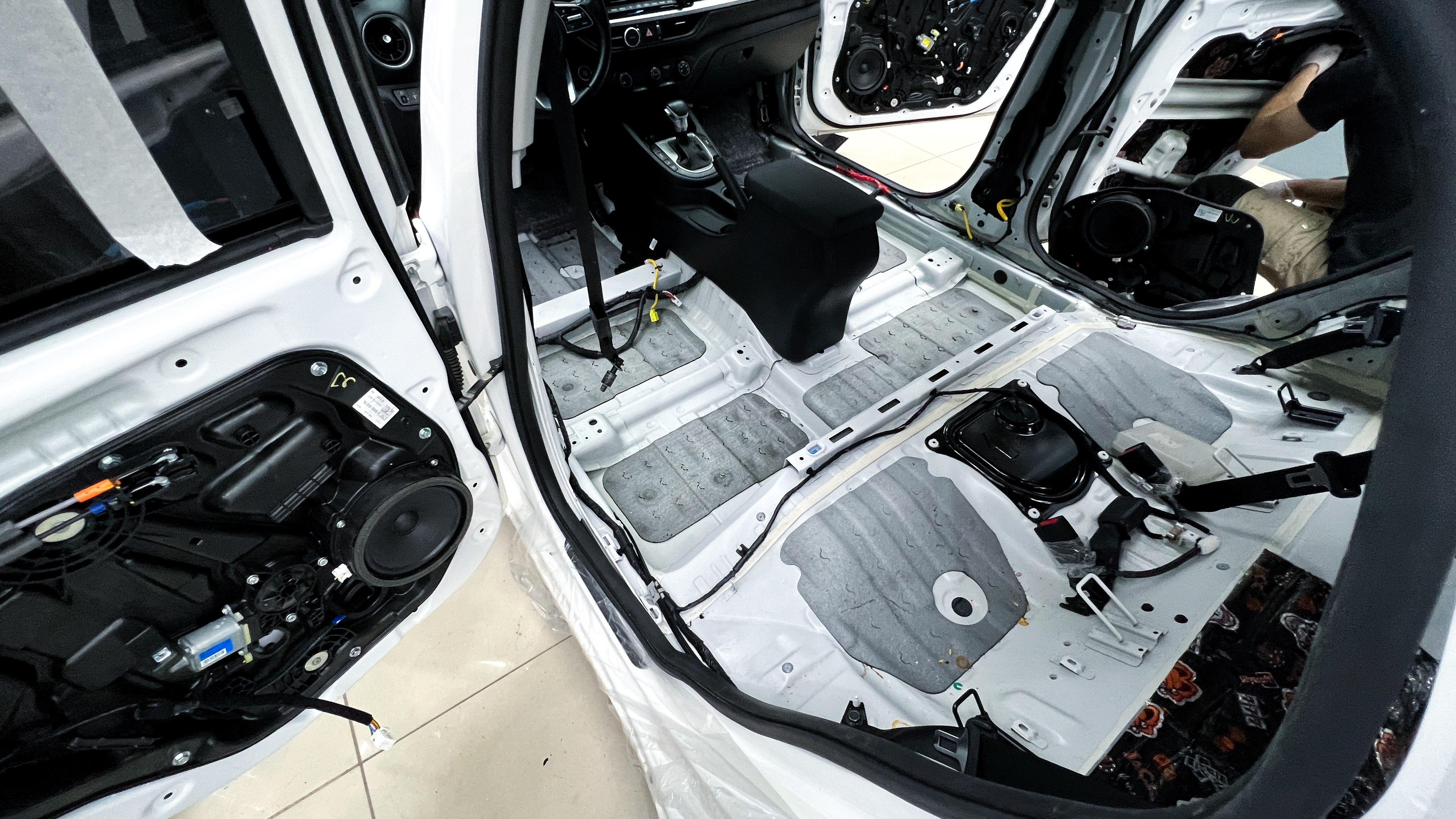 Виброизоляция пола Киа К3 Виброизоляция пола позволит нам значительно снизить вибрацию от дороги, увеличить целостность и сбитость автомобиля, а также уменьшить чувствительность от самой структуры дороги.
