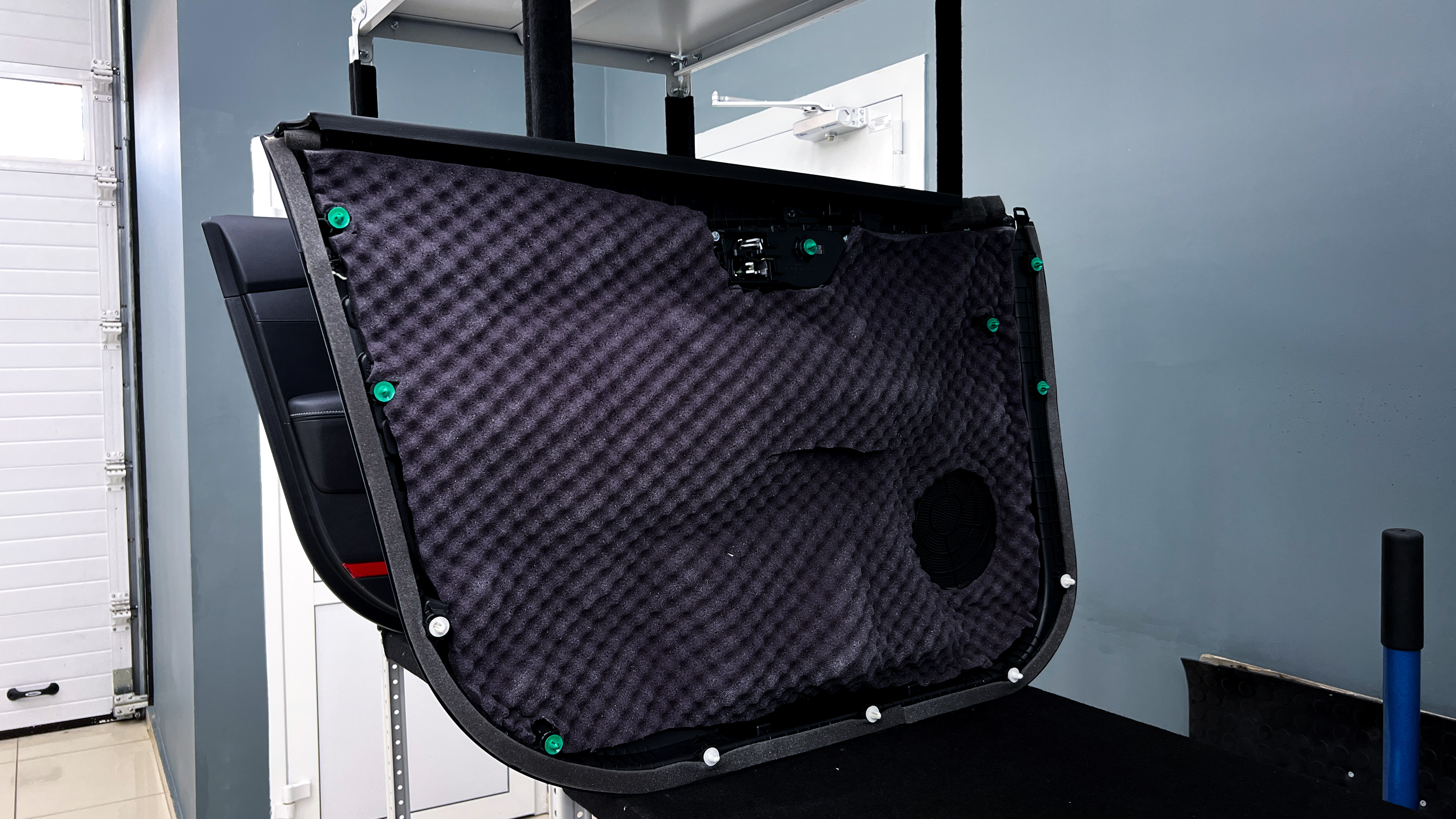Шумоизоляция дверной обшивки Киа К3 Этот слой отлично справится со снижением внешних шумов, уплотнит пространство между обшивкой и дверью, а также избавит от ненужных скрипов и дребезгов.