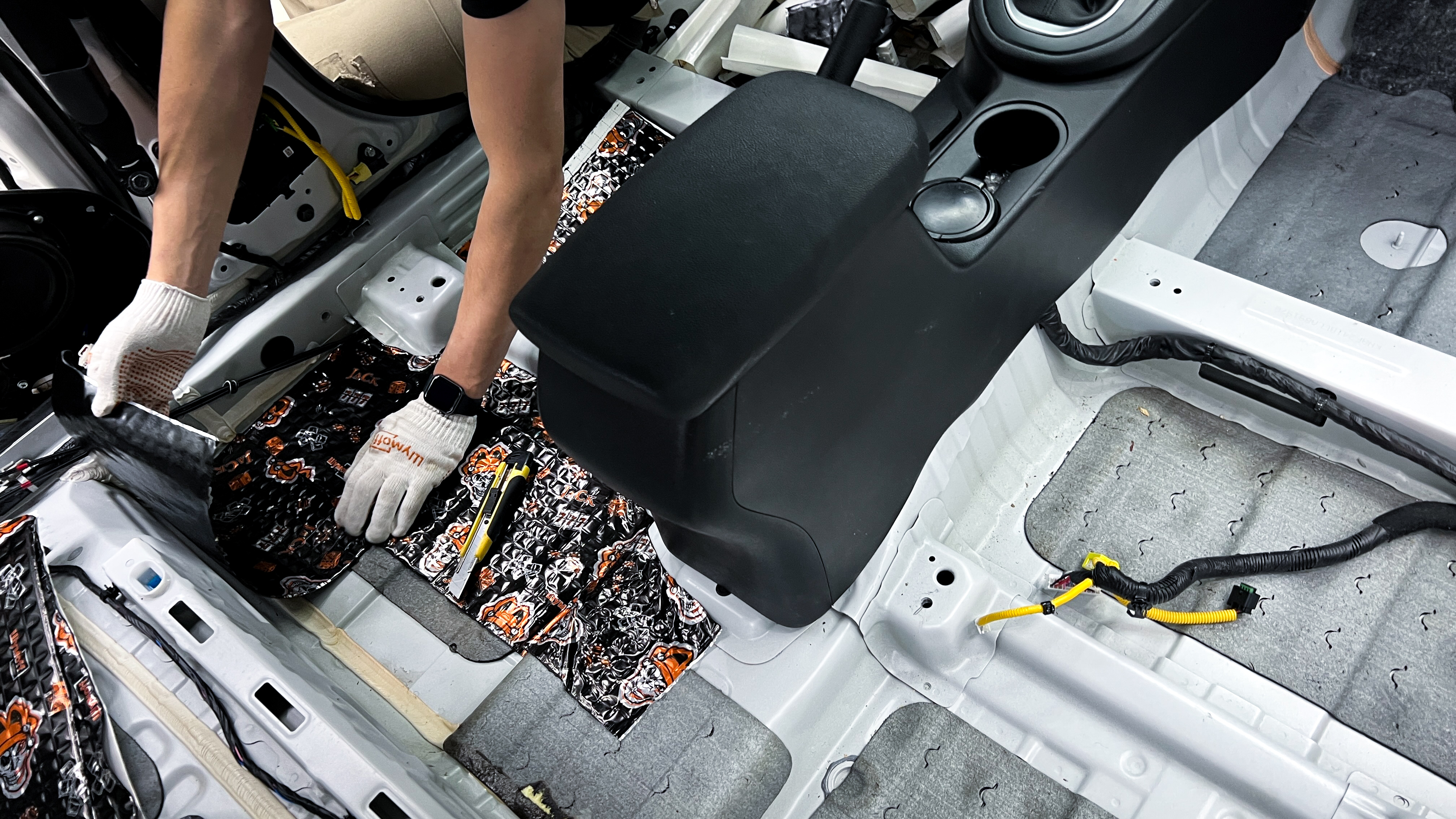 Шумоизоляция пола Киа К3 Переходим к нанесению второго слоя.