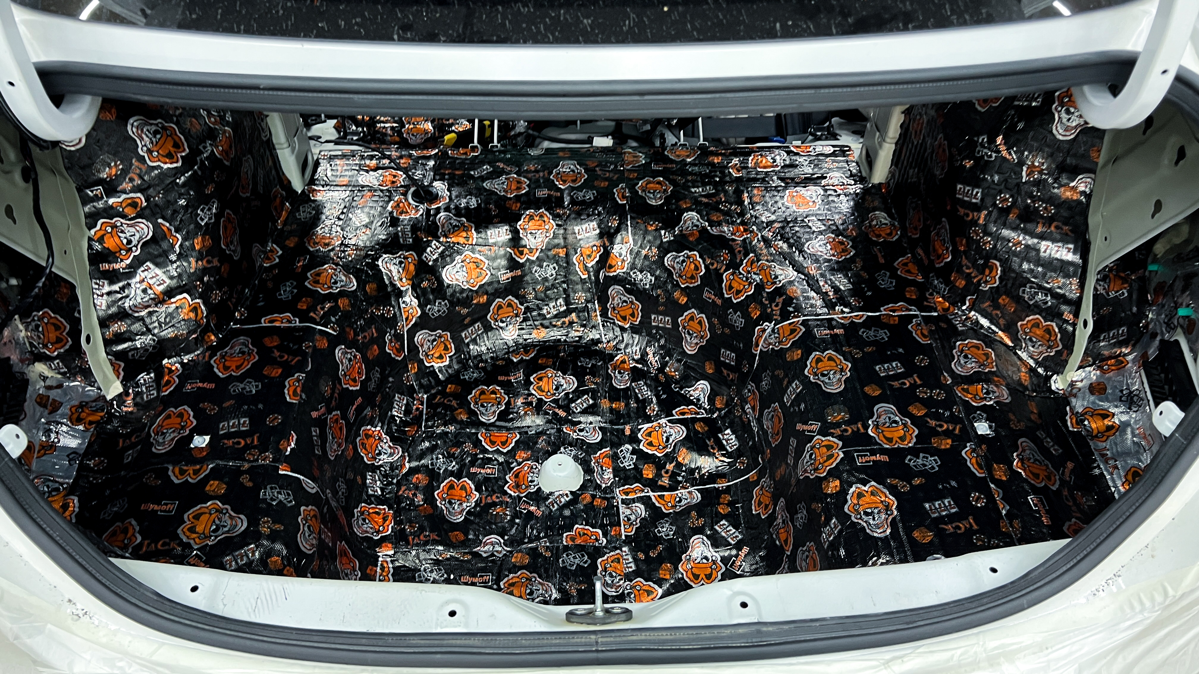Виброизоляция багажника Киа К3 В багажник клеим уже два вида виброизоляции, комбинируя их на разные части кузова.
