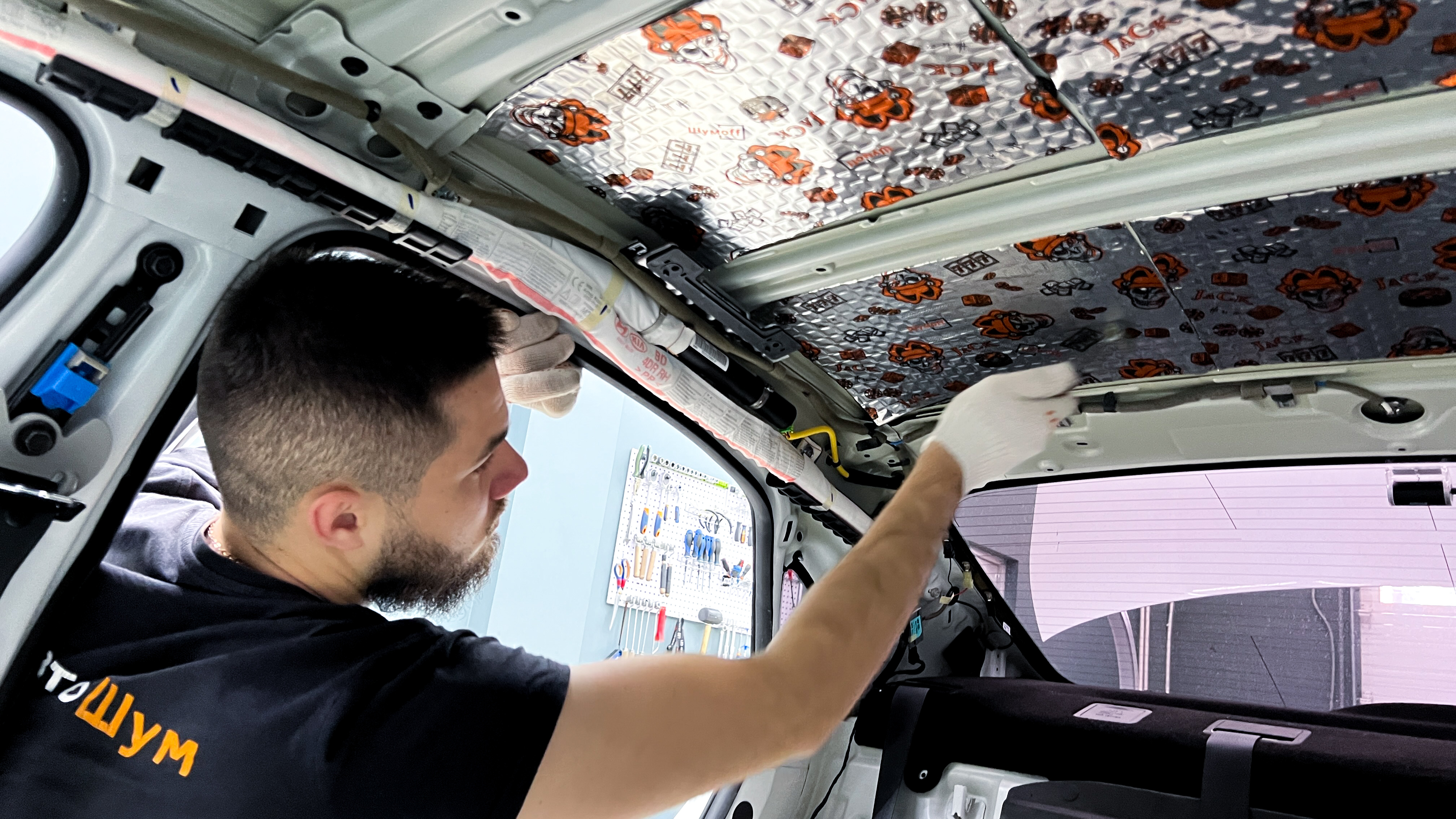 Шумоизоляция крыши Киа К3 Поверх виброизоляции клеим шумопоглотитель Шумофф Герметон 7.