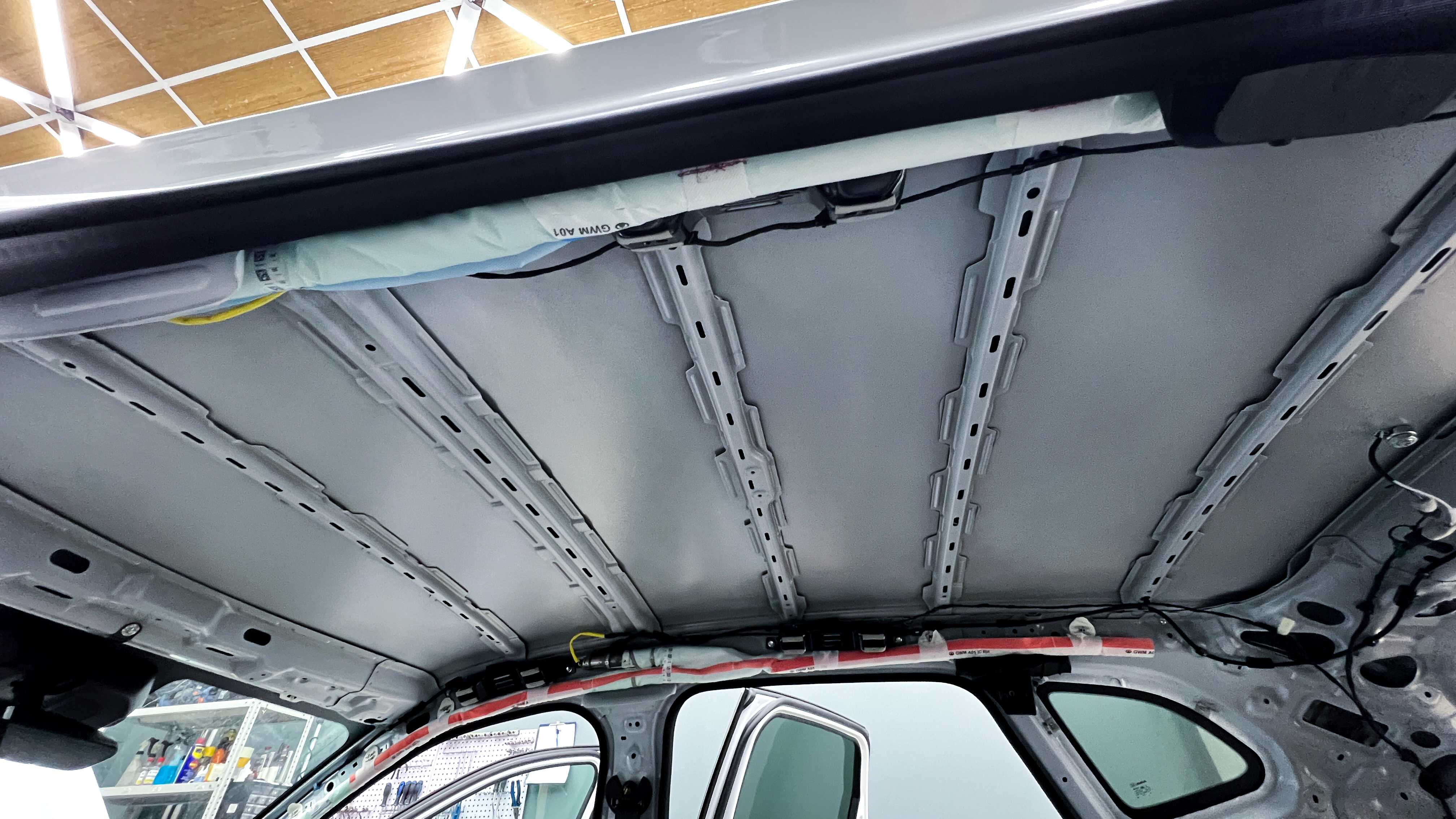Для виброизоляции крыши багажника используем материал Шумофф L2, чтобы свести увеличение веса к минимуму. После чего переходим к обшивке.
