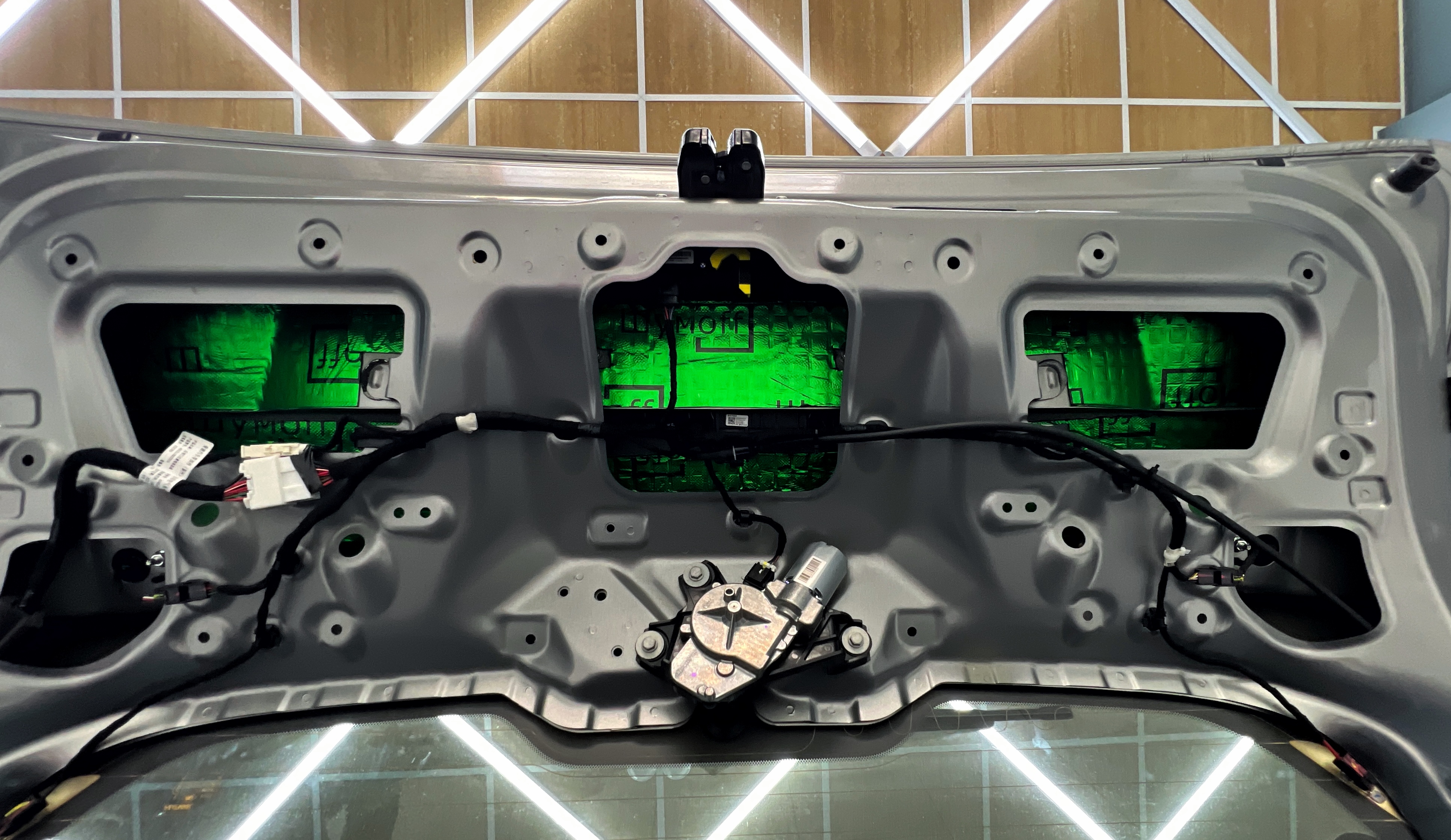 Крышку багажника оклеиваем виброизоляцией Шумофф М2, это позволит свести увеличение ее веса к минимуму, дабы не возникло проблем с открыванием багажника.