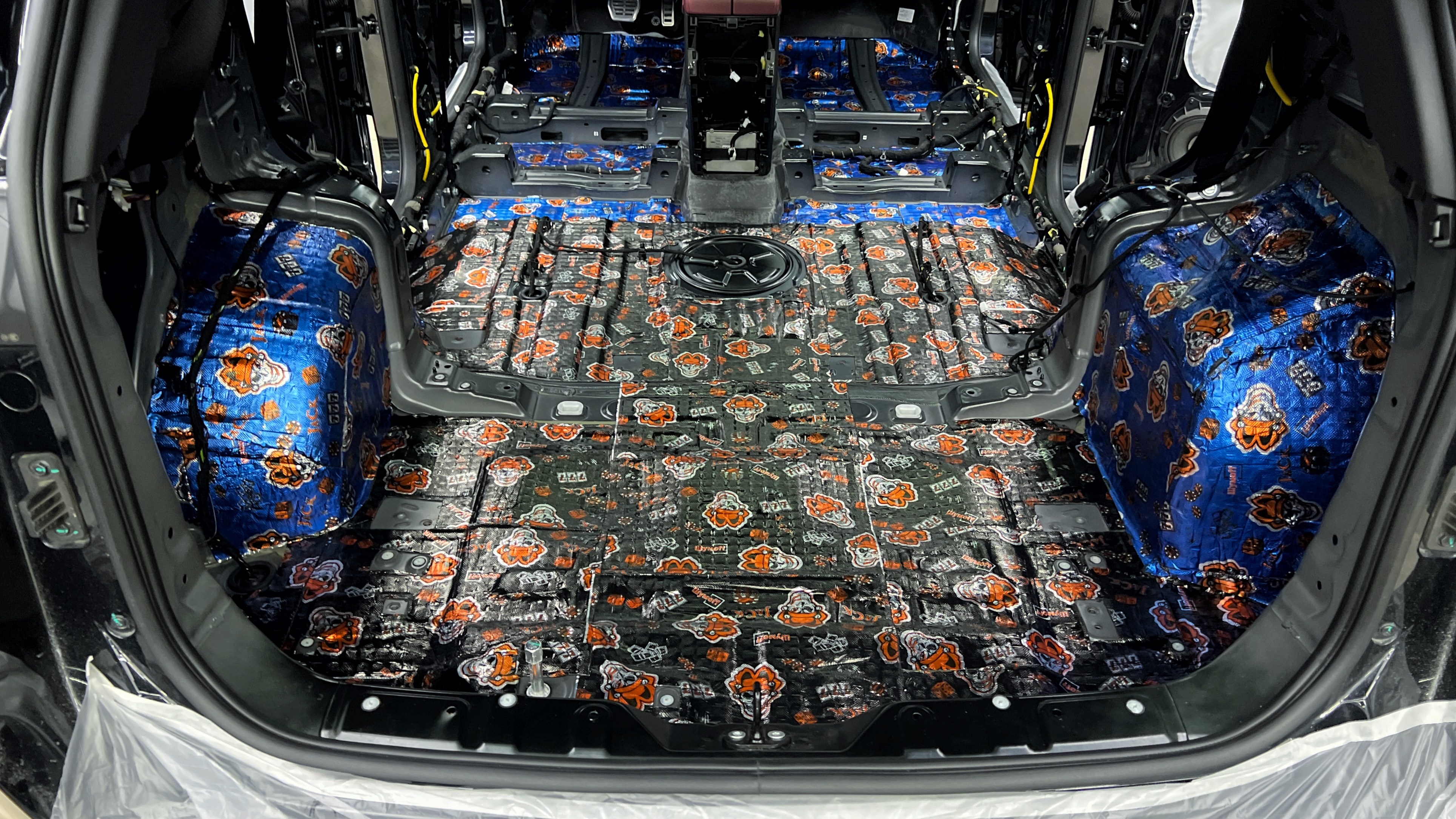 Дно багажника и крылья оклеиваются шумо и теплоизолятором Шумофф П4 4. Арки оклеиваются шумопоглотителем Flex A15.