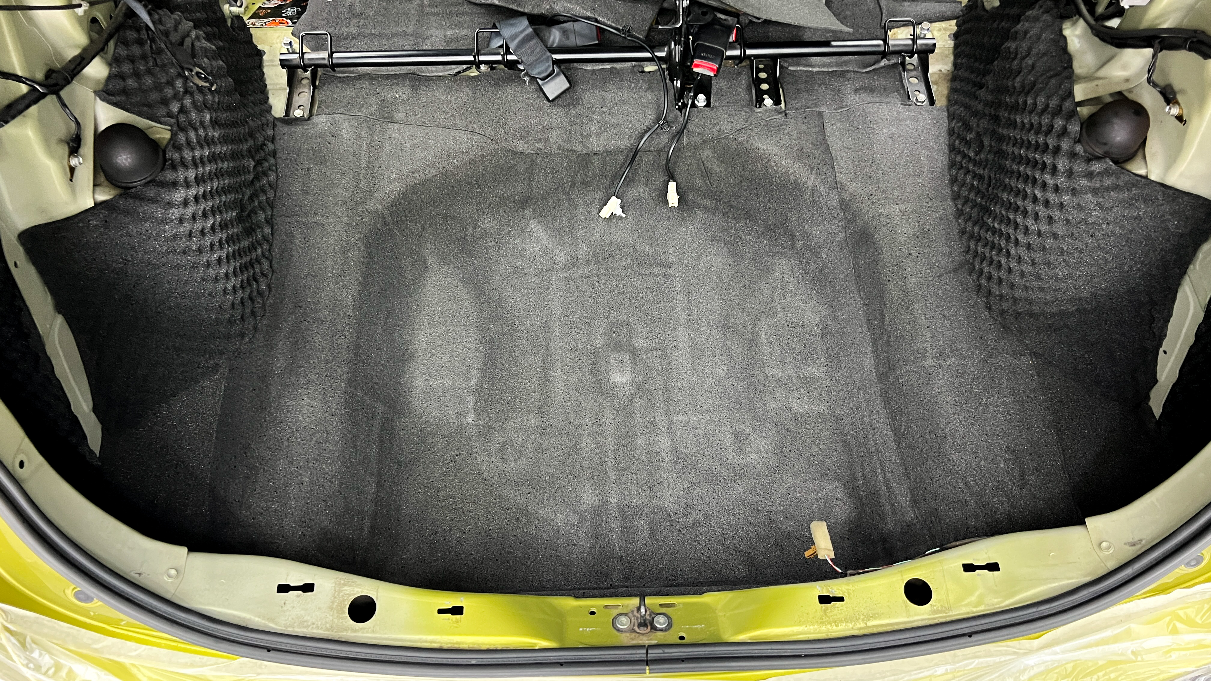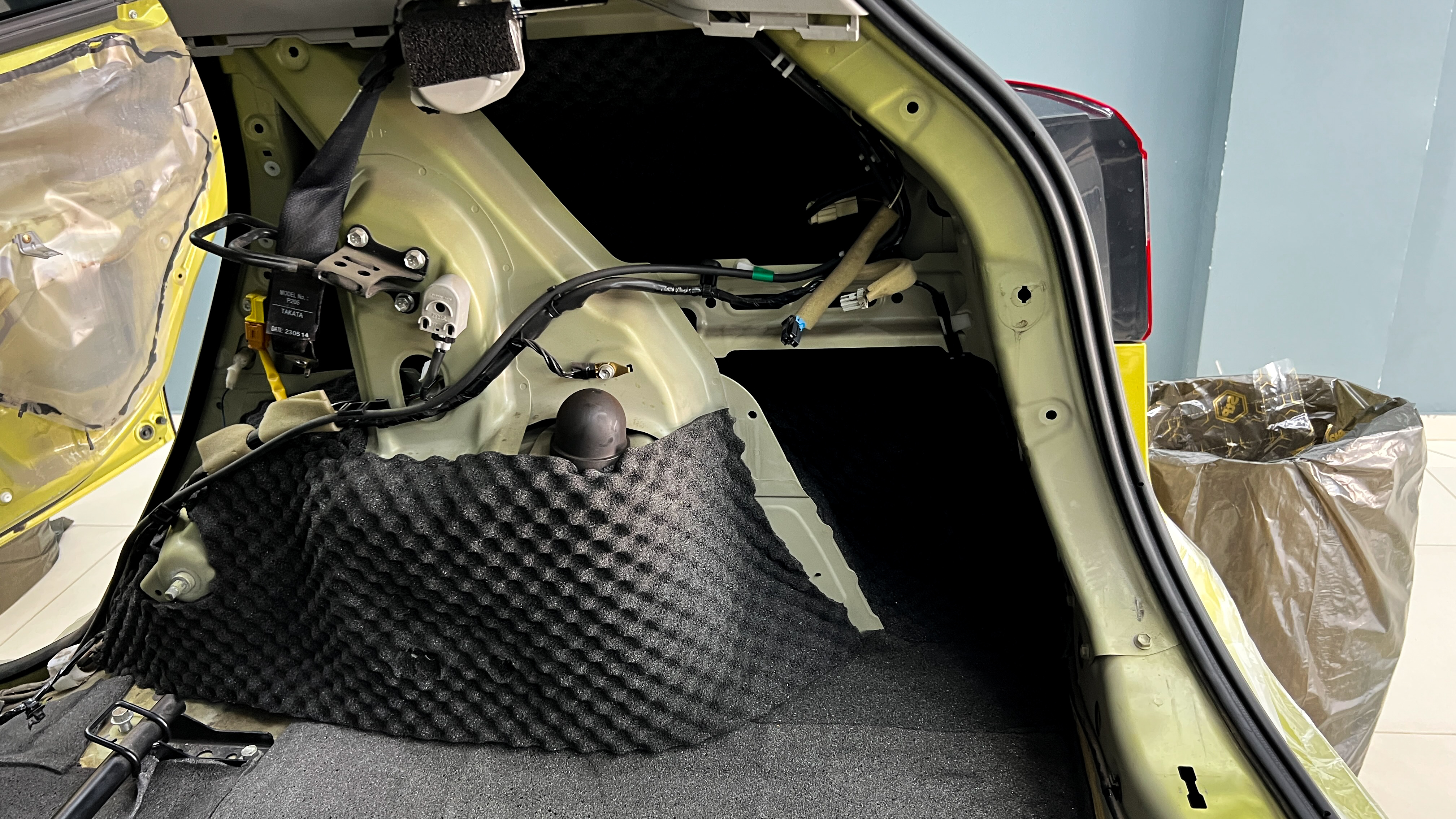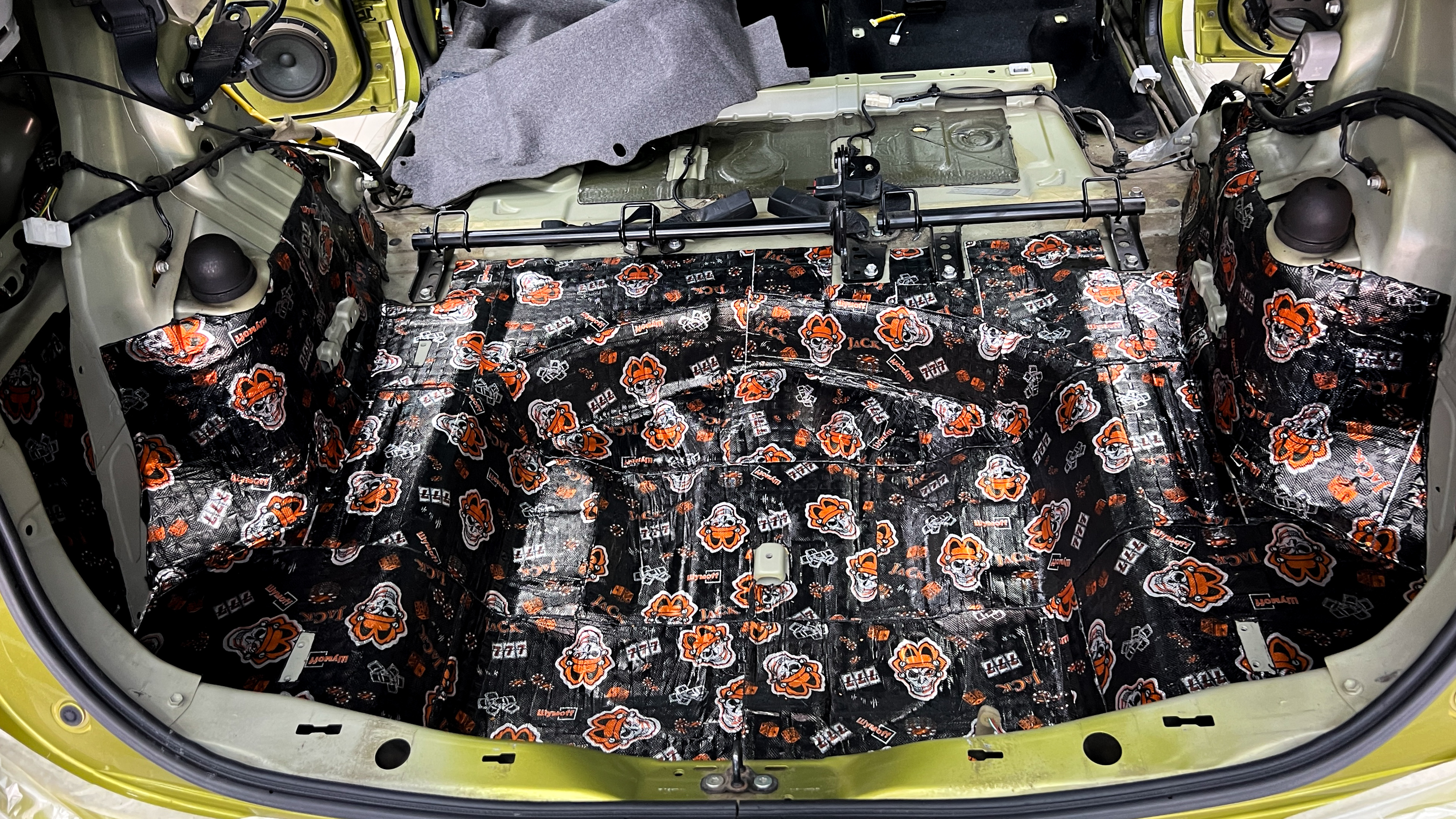 Штатная шумоизоляция багажника практически отсутствует, при