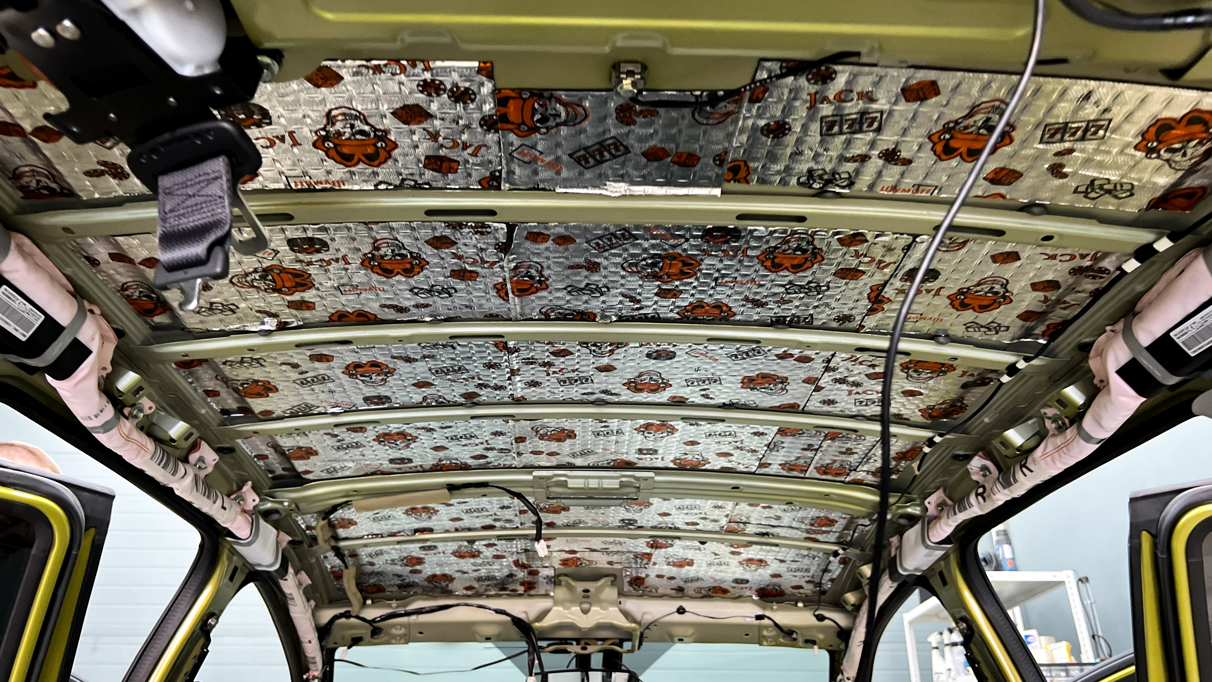 Внутренняя поверхность обивки оклеивается шумопоглотителем Flex А15.