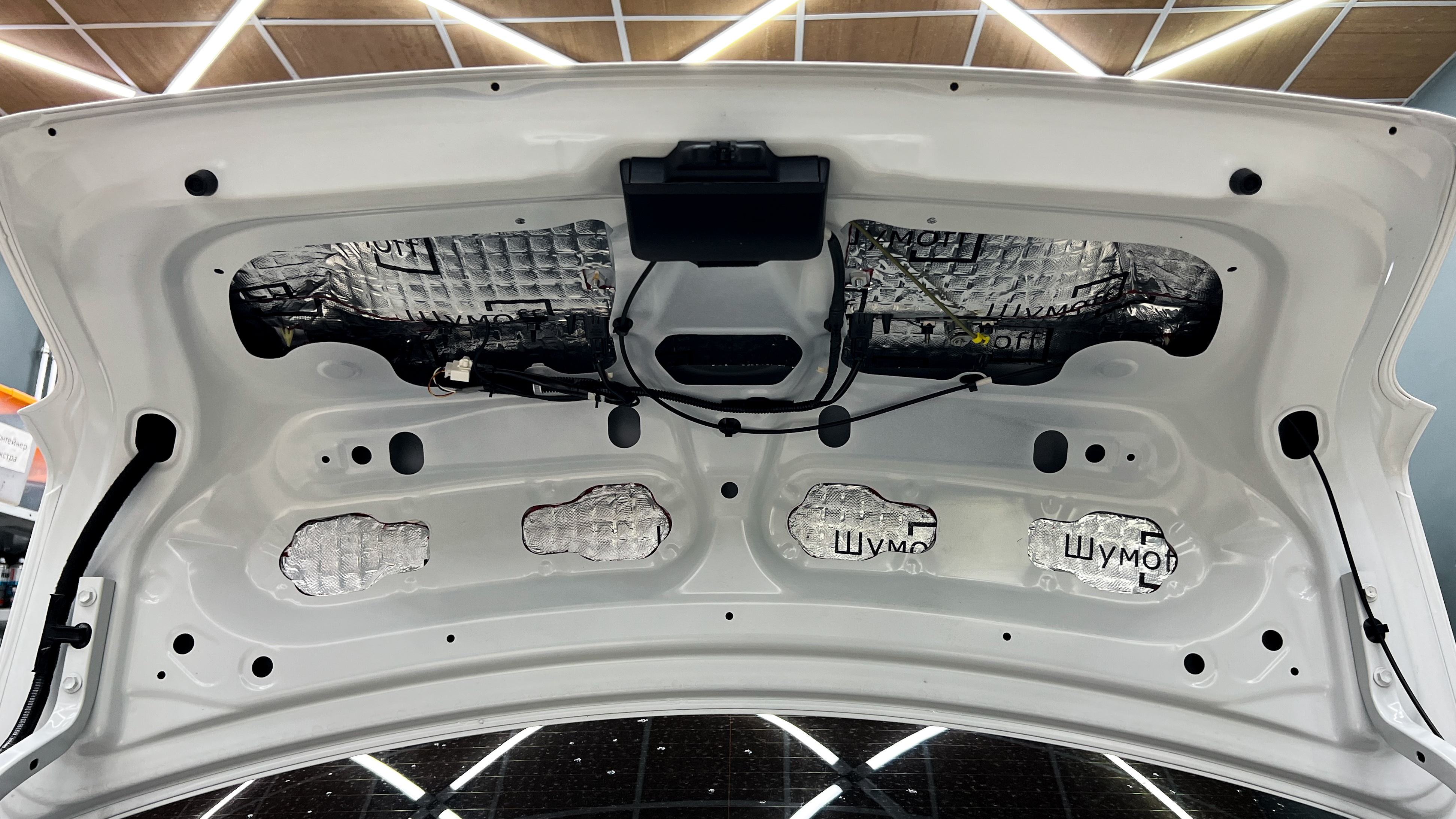 Крышку багажника оклеиваем виброизоляцией Шумофф L2, это позволит свести увеличение ее