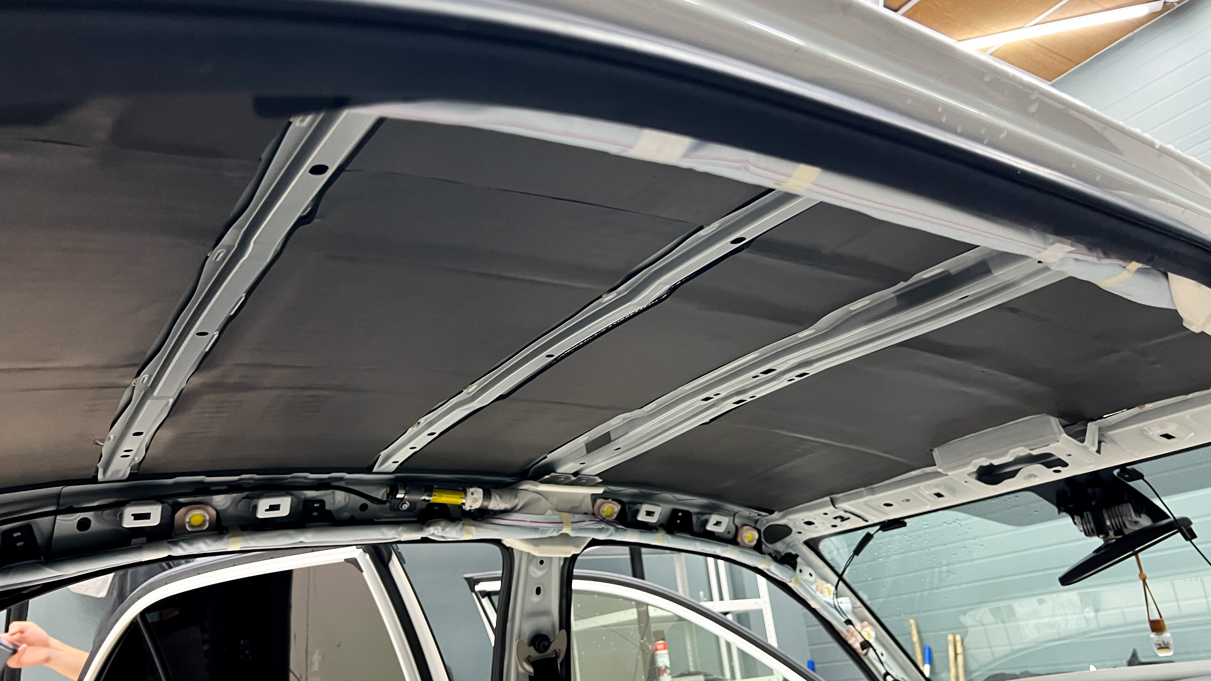 чистая поверхность крыши Тойота Королла Аксио Обезжириваем всю поверхность крыши и приступаем к монтажу первого слоя.