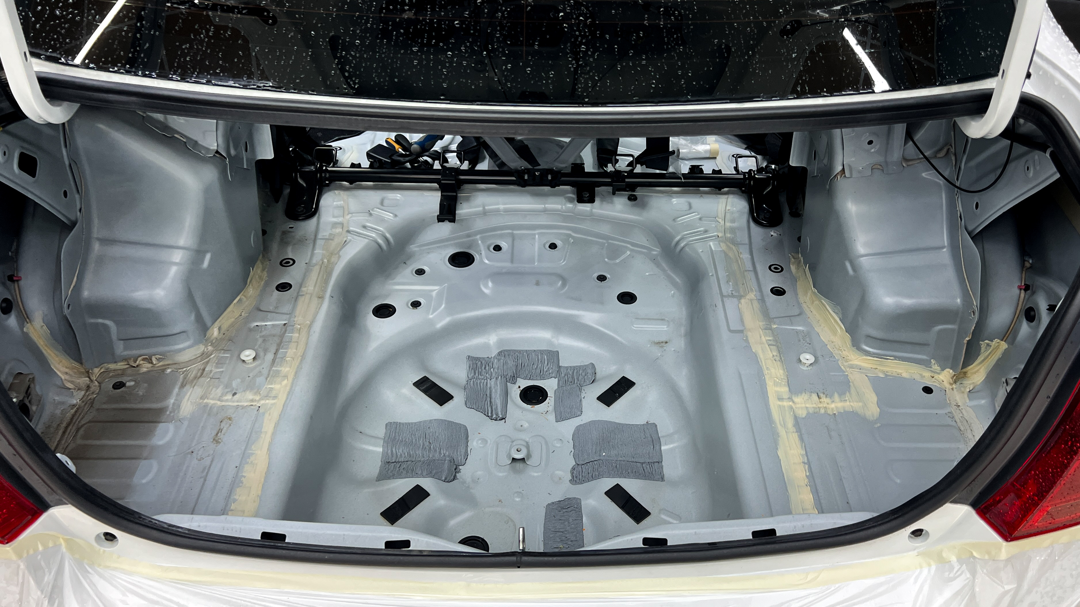 Вторым слоем на дно и крылья багажника монтируем Шумофф Герметон 7.