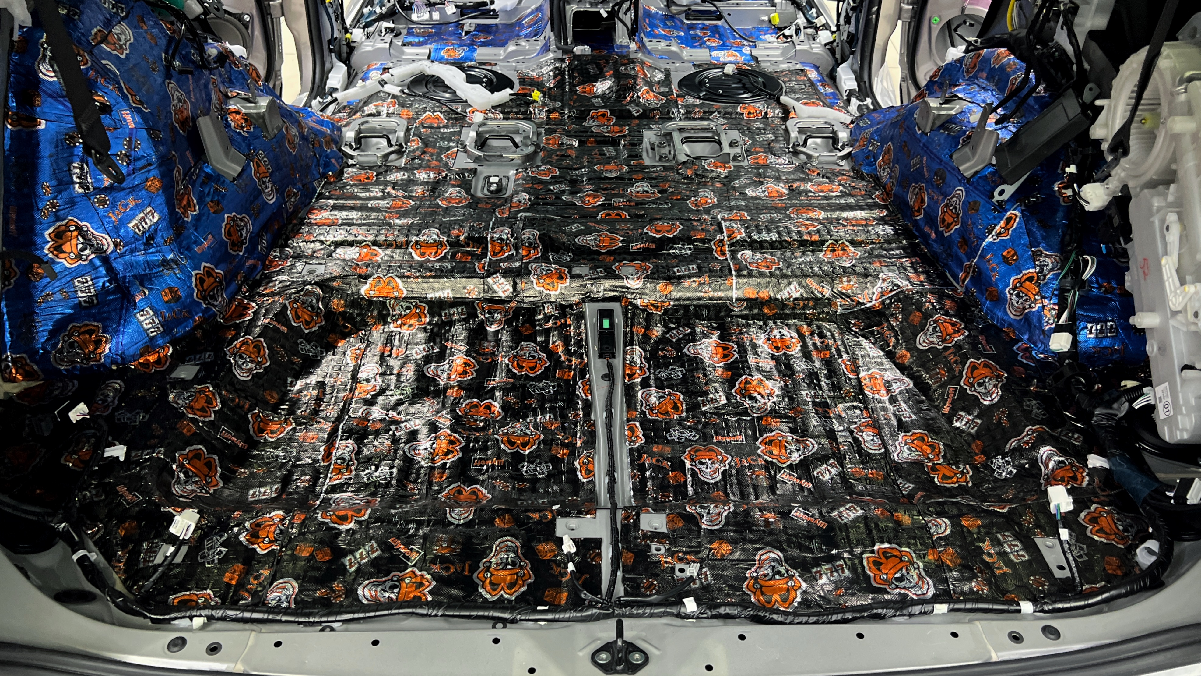 Шумоизоляция багажника Тойота Ленд Крузер Прадо 250 Далее все дно оклеиваем шумопоглотителем Шумофф Prizma 6. На крылья вторым слоем клеим более толстый рельефный шумопоглотитель Absorber А15.