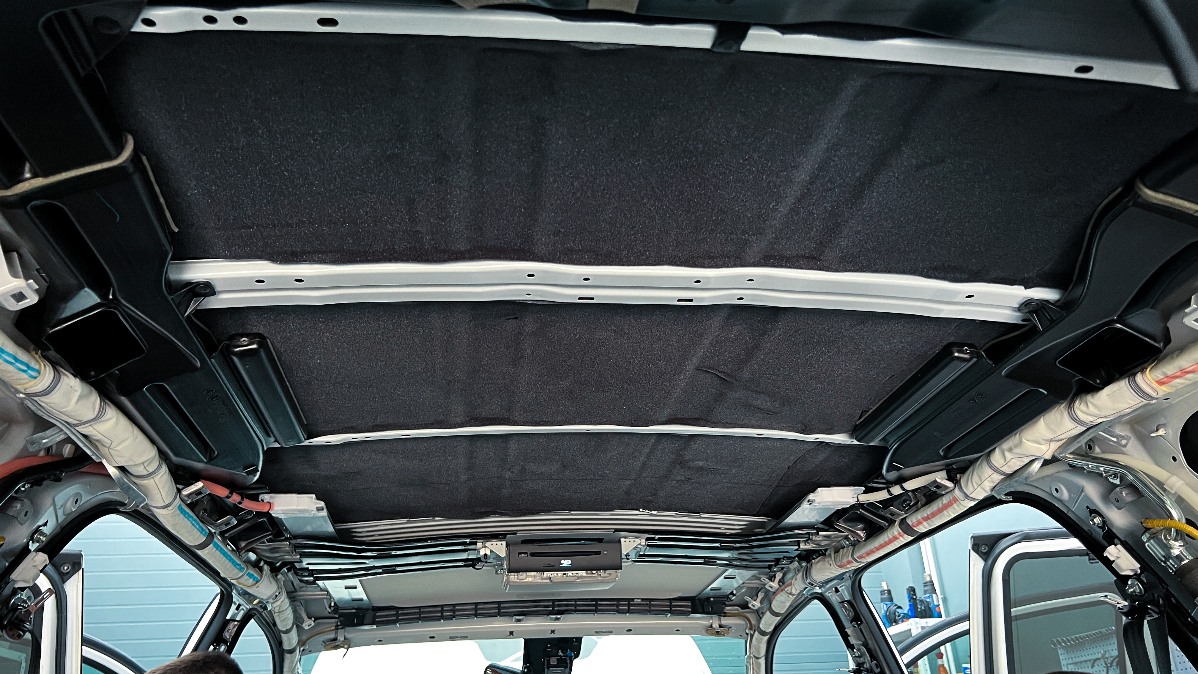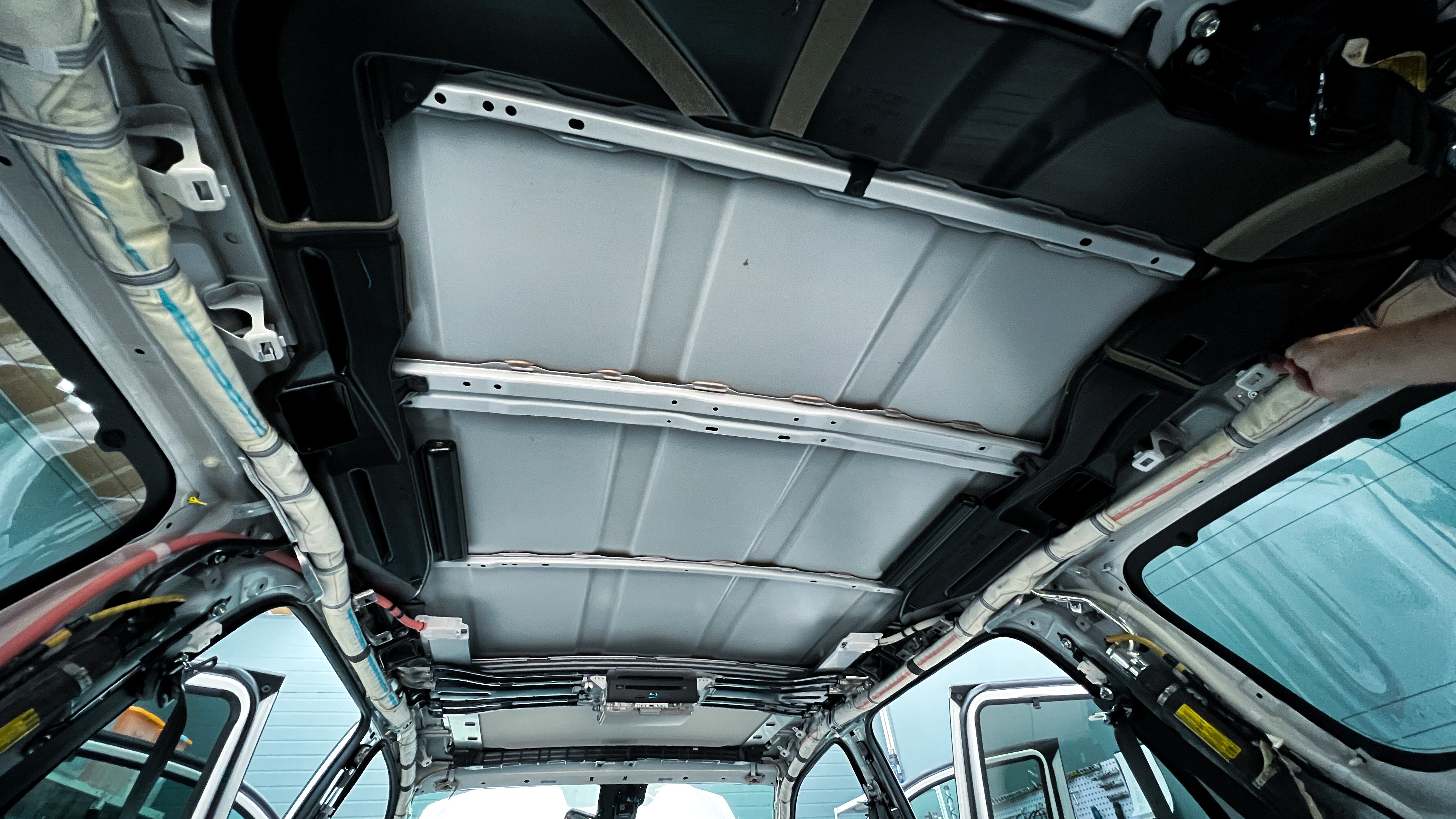 Штатная шумоизоляция крыши на Toyota Sequoia (Тойота Секвоя) полностью отсутствует. Обезжириваем поверхность для начала монтажа виброизоляции.